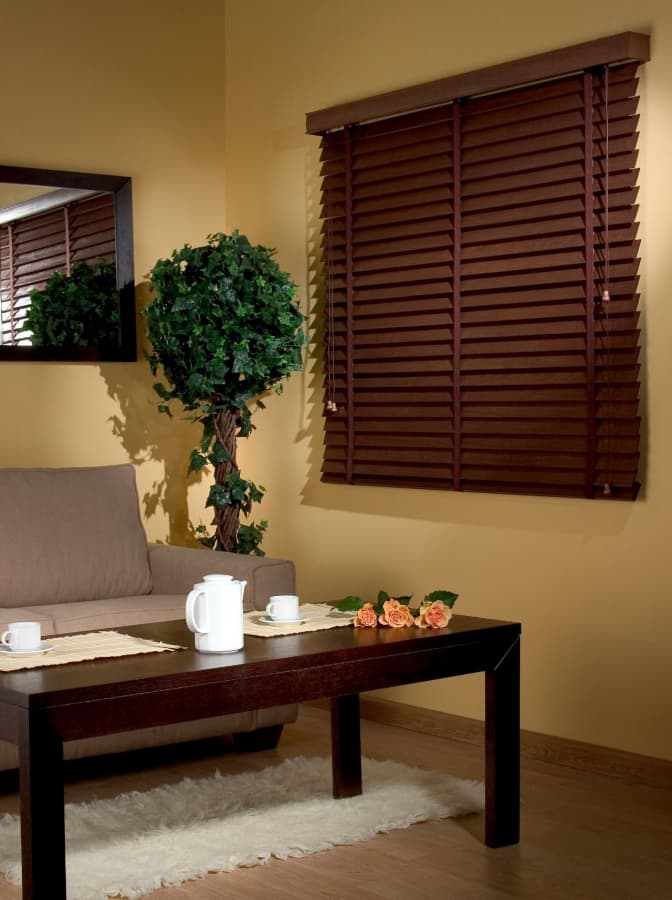 Состоят из узких деревянных планок (ламелей), расположенных горизонтально и соединенных между собой шнуром. Управление осуществляется с помощью шнура, который позволяет вращать ламели для регулировки освещенности или полностью собирать их вверх. Можно крепить жалюзи прямо на створку окна, что экономит пространство.